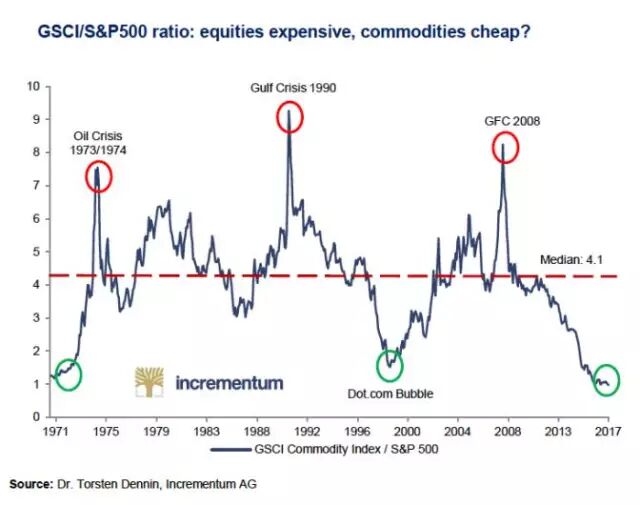 常言道,手中有粮,心中不慌。粮食价格在2016年跌入谷底,今年有所反弹,但相对于股票仍然很“便宜”。而根据高盛大宗商品指数与标普500指数比值模型,在股市下跌的背景下,粮食似乎要进入下一轮“牛市”了。