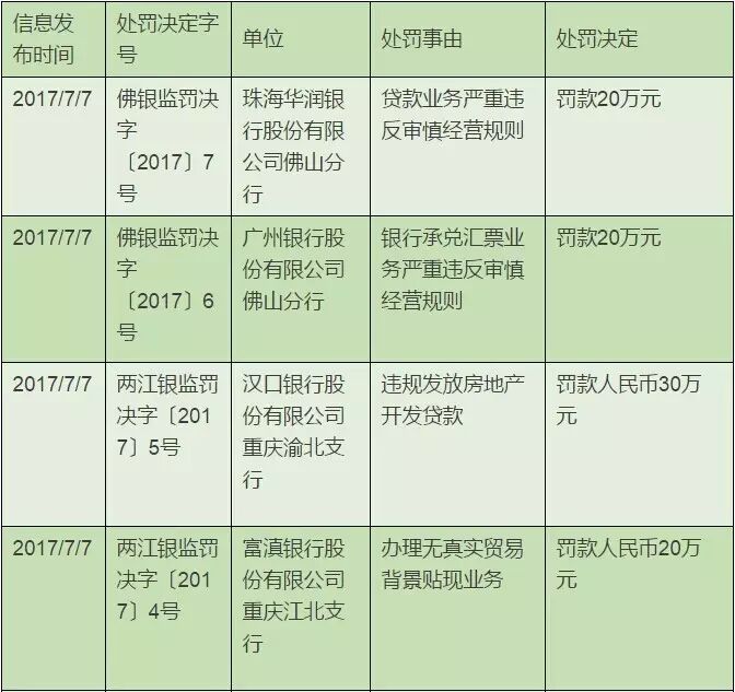 来源:金融与法7.77月4日,银监会网站公告两江银监分局、佛山银监分局等银监分局行政处罚信息13份。罚款金额合计247万元。处罚事由包括:违反审慎
