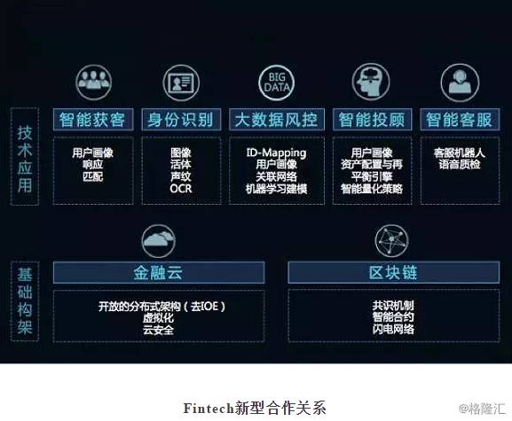 在Fintech时代,野蛮人变成了同路人,“工、农、中、建”四大国有商业银行先后宣布与百度、阿里、腾讯、京东牵手,共同在金融科技、零售、消费、信贷等多个领域展开深入合作。从当年马云的“银行不改变,我们就改变银行”到现在蚂蚁金服井贤栋的“没有竞争者,只有同路人”发生了根本性的转变,从意识形态上可以看出,这是金融机构与互联网科技公司的一种“Fintech新型合作关系”的体现。