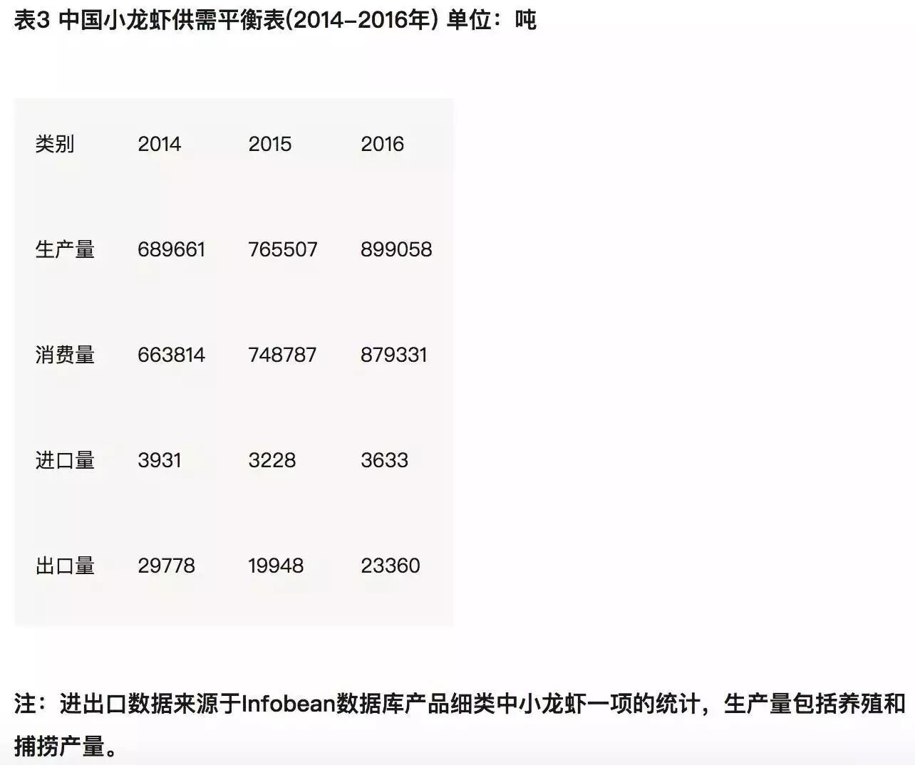 此外,2014年和2015年,国内小龙虾消费量也分别占了生产量的96.3%和97.8%,不仅占比很高,而且持续上涨!国内吃货们对小龙虾的消化力量,已经接近超神,无-人-可-挡。