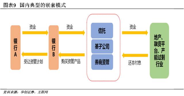 刚性兑付下的监管套利进一步加剧了金融体系的多重嵌套行为。2014年的新预算法并没能有效打破中央政府对地方灰色债务的背书,刚兑预期下,金融机构仍然愿意为未纳入预算的PPP、融资平台等低信用等级政府授信,并借道非银实现分级嵌套以规避监管,并在多方参与中实现信用增信。