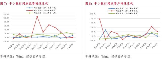 从上市银行一季报来看,金融去杠杆导致资金回流,国有大行的资产、负债增速反而提高。不过,受监管升级、债券市场调整的冲击,中小银行确实降低了扩张速度,个别机构出现了“缩表”的情况。暂时来看,中小银行并不存在明显的“缩表”动机,一季度的资产负债增速虽然较去年降幅较大,但较去年同期下降幅度有限。由于一季度并不是金融去杠杆的高峰期,监管政策是在4月份之后才密集出台,同业链条收缩对中小银行的影响预计会在之后体现的更为明显。