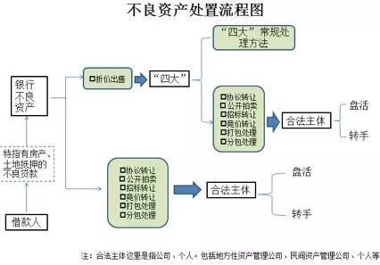 合法主体可以从银行直接购买不良资产包、也可以从“四大”购买。只有有抵押物的不良资产,合法主体才会有理由购买,目的可以是盘活(自用),也可以是投资、转手获利。合法主体不同于“四大”有足够能力去采取除多样化出售以外的处置方法,所以只倾向于认购有抵押物的不良资产。