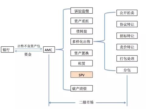 8. 证券化:通过SPV(特殊目的载体) 把不良债权打包卖掉后设计成证券产品发售。