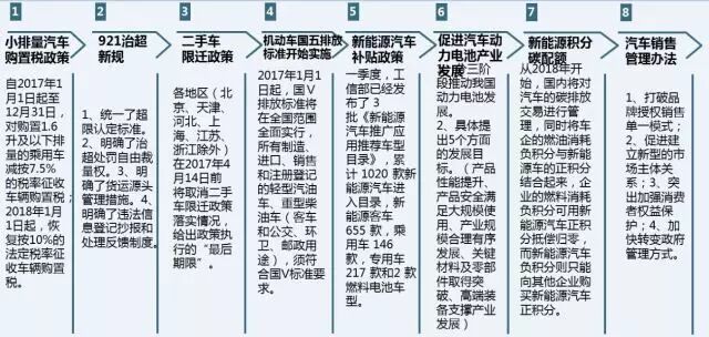 2017年下半年汽车金融核心观点 整体行业预测:2017年全年汽车销售环比增速或将呈“V”型,SUV及重卡将是增长重点。 汽车零配件:国产化替代趋势明显,重点关注高附加值及盈利强的关键零配件。 行业亮点:新能源汽车增速在2017年3季度将提速,电池市场环境较差,电机电控自主化程度有待提升。智能汽车发展仍待时日。 关注二手车金融及汽车后市场机会,核心零配件供应链机会,核心零配件及新能源零配件并购机会。 一、汽车行业整体发展概况 整体政策趋向利好,亦有购置税,新能源补贴退坡等负面影响。 图表1:汽车行业最新政策图 数据来源:诺亚研究根据公开资料整理 受政策退坡影响,2017年汽车整体增速将显著低于2016年,二手车增速将快于新车。 2017年1-4月,新车销售为908万台,同比增长4.58%,增速比去年同期减缓1.53个百分点。2017年1-3月,二手车销量为279万台,同比增长22.17%,增速比去年同期增长17.89个百分点。 图表2:2004年-2017年1-4月新车销量走势 图表3: 2004年-2017年1-3月二手车销量走势 数据来源:WIND,诺亚研究 汽车行业细分预测 乘用车方面:SUV仍有一定的增长潜力,但高增速不可持续;合资品牌新车型周期将一定程度上影响自主品牌的增速。 商用车方面:2017 年全年重卡销量增速或将回落,但整体仍有望维持两位数增速;关注轻卡龙头车企及发动机等核心零部件的中高端化转型。 二、汽车消费金融 汽车消费金融行业玩家众多,银行及汽车金融公司系实力强大,融资租赁系将崛起。 图表4: 汽车金融产品分类及基本特征 图表5:融资租赁系标杆企业特征 数据来源:诺亚研究根据公开资料整理 未来汽车消费金融产品创新亮点在于二手车金融及汽车后市场金融。 图表6:二手车电商系企业特征及汽车后市场三大潜力市场 数据来源:诺亚研究根据公开资料整理 三、汽车供应链金融 主要研究核心为整车厂上游零配件行业,部分关键、高精尖、高利润产品主要依赖进口。随着自主品牌的崛起,零配件行业亦呈现出国产替代的重要趋势。 图表7:汽车重要零配件构成图 数据来源:诺亚研究根据公开资料整理 汽车供应链金融关键点在于寻找合适的核心企业,产品结构设计均衡合理。 图表8:汽车供应链金融重要关键点 数据来源:诺亚研究根据公开资料整理 四、汽车并购金融 内资零配件企业外延并购趋势明显,未来市场空间逐步打开。 外资零部件厂商逐步战略调整,精炼公司产品组合,集中发展自身具有竞争力或者盈利空间的业务。在产业资本支持下,内资零配件企业通过外延发展获取核心技术、打通上下游、拓展销售渠道、提升产能及品牌效应。 图表9:外资出售资产及内资外延重点并购案例 数据来源:诺亚研究根据公开资料整理 新能源汽车作为未来行业发展热点,无论整车厂抑或核心零部件企业均意图扩展相关战略业务,未来将涌现更多的并购机会。 图表10:新能源汽车重要并购案例 数据来源:诺亚研究根据公开资料整理