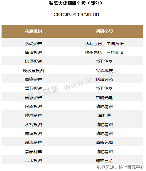 格上研究中心发现,本周个股“劲胜精密”受到最多私募机构关注,被15家机构调研。据格上研究中心了解,该公司主要专注于消费电子领域精密模具及精密机的构件研发、设计与生产领域。根据公司发布的2017年半年度业绩预告,由于公司高端装备制造业务中的钻铣攻牙机等产品销售持续增长,加之公司对消费电子产品精密结构件业务进行调整,推动金属精密结构件项目产能释放及产品良率提升,使得公司的盈利能力大增,公司预计实现归属于上市公司股东的净利润3.00-3.05亿元,同比增长495%-505%。