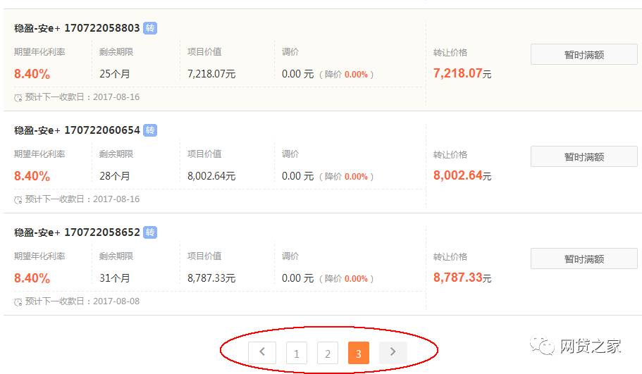 (截至2017年7月22日15:30,债权转让项目减少至3页)