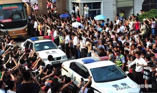 上图:毛坦厂中学高考的“出征仪式”,场面宏大,有多辆警车开道。