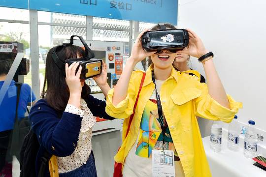 2016年10月13日,观众在杭州云栖大会会场一展台内体验利用虚拟现实技术购物。当日,以“飞天·进化”为主题的2016杭州云栖大会在浙江杭州云栖小镇国际会议中心开幕。大会持续4天,举办超过450场主题演讲,设立数万平方米创新展览体验区,展示国内外先进科技成果。图/新华