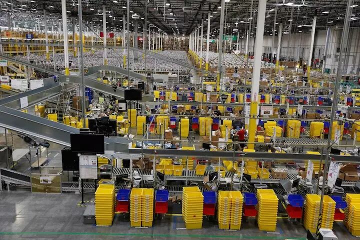 (亚马逊的物流仓库,图片来源:TechCrunch)