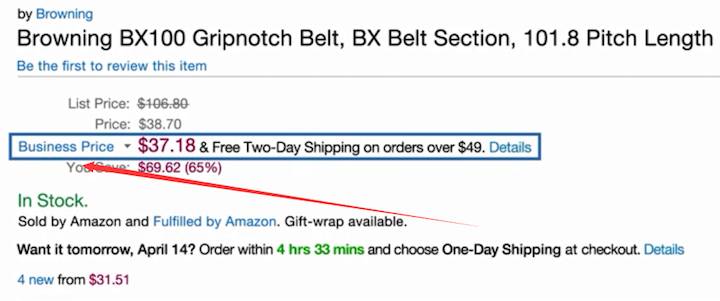 此外,只有注册了 Business 的买家才能看到面对企业用户的售价(Business Price),普通的消费者只能看到产品 B2C 的价格。无论是个人用户、少量批发用户、大量批发用户都可以在同一个商品页完成交易,极大地整合了商品页的使用效率。亚马逊并不关心用户到底是消费者还是企业,只是在「万货商店」原有的基础上,提供更多的选择。