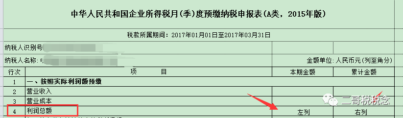 这是你填写的季度利润表的利润总额的左右数。(图片是07版本的)