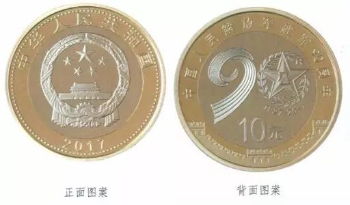 日前,中国人民银行决定自2017年7月31日起陆续发行中国人民解放军建军90周年纪念币一套。该套纪念币共10枚,其中金质纪念币2枚,银质纪念币7枚,双色铜合金纪念币1枚,均为中华人民共和国法定货币。