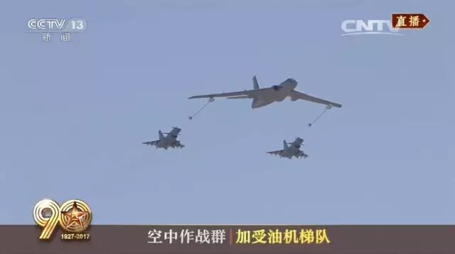 此次大阅兵,陆海空三军航空兵100多架战机编成1个纪念标识梯队、1个空中突击梯队和6个空中梯队,从东北、华北6个机场起飞向阅兵地点集结,接受检阅。