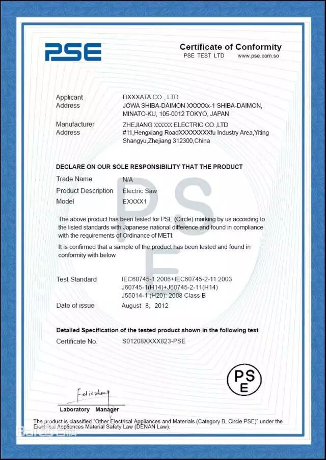 PSE是日本JET(Japan Electrical Safety & Environment)针对符合日本安全规定的电子电器产品所给予的认证标章。根据日本的DENTORL法(电器装置和材料控制法)规定,498种产品进入日本市场必须通过安全认证。