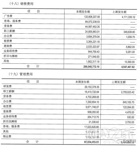 为进一步解析平台盈利数据,网贷之家梳理了中国互金协会信披系统(宜人贷、信而富数据相对较为公开,故本文不进行分析)中,20家代表性平台“2016年财报——利润表”中的费用类数据之和得出表2,即:销售费用、管理费用和财务费用之和。其中,财务费用多为平台利息支出、手续费及其他相关费用,而销售费用、管理费用则包含广告费、推广费、员工工资等在内的多种费用,且各个平台归类均有所不同(实例见下文截图)。