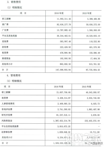 你我贷2016年财报——利润表中,销售、管理费用明细