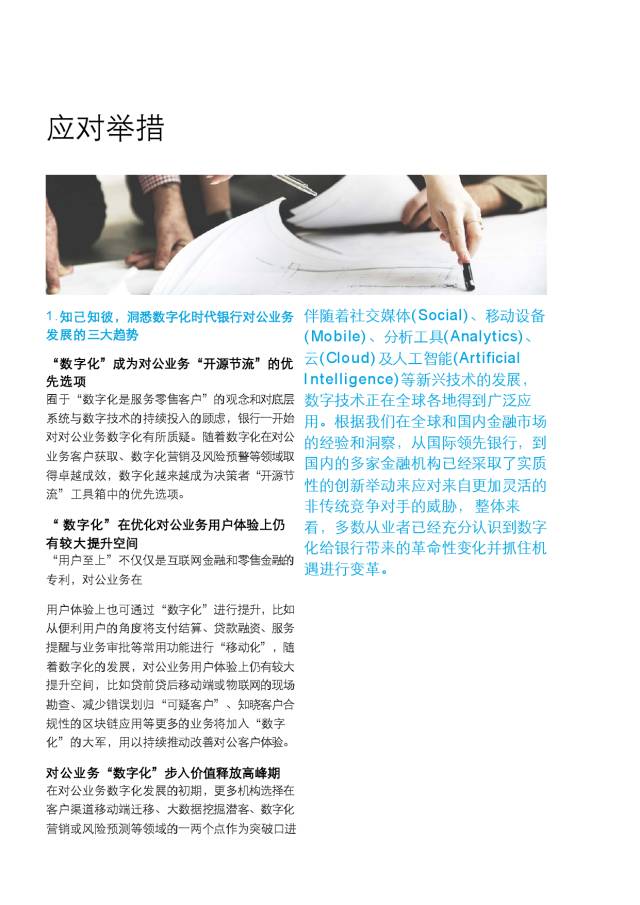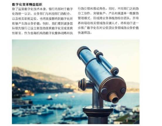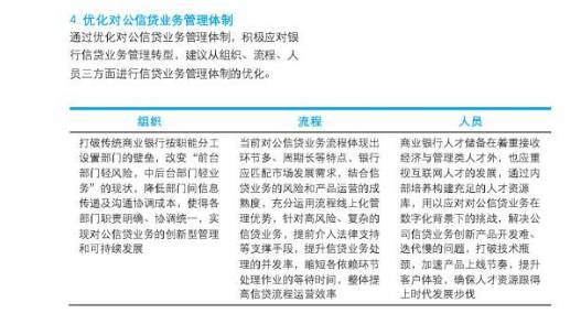 银行对公信贷业务经营管理转型应对举措:洞悉数字化时代银行对公业务发展的三大趋势;积极探索数字化在银行业的具体应用;构建对公信贷业务转型的基础能力。