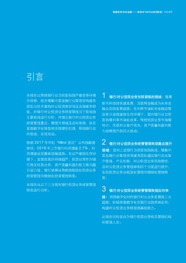 《智慧信贷 科技金融-新常态下的对公信贷转型)报告对银行对公信贷业务经营管理当下面临的主要挑战进行分析,并提出银行对公信贷业务经营管理