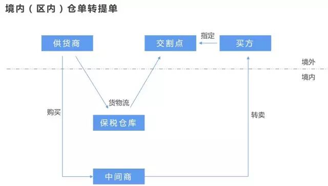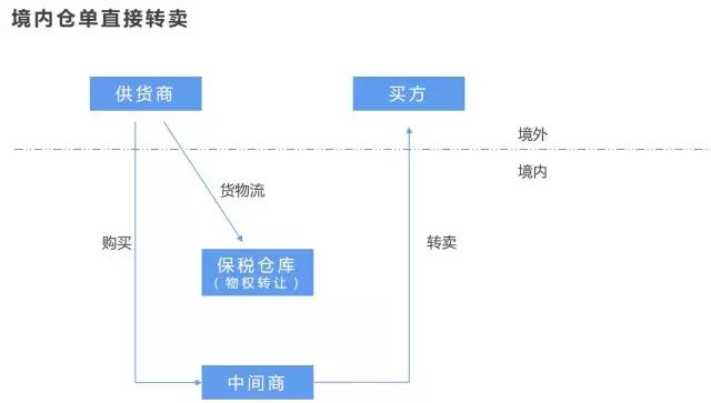 图 | 传统转口贸易 第二类为国内兴起的保税区转口贸易,即货物由供货方发货至中间商指定的保税区域(含保税区、保税物流园区或保税仓),在保税区内实现物权交换。这是上海自贸区外高桥区域常见的转口贸易模式,大宗商品也通常会采用这种方法。 图 | 保税区转口贸易 而转口贸易根据货物流转,即物权转移凭证的不同,可进一步分为提单项下转卖和仓单项下转卖。 提单转卖 提单项下转卖又可进一步分为境外直接转卖与境内(区内)仓单转提单两种模式。 境外直接转卖模式中,货物不入境。中间商与供货商签订购货合同后,由供货商采用海运方式将货物运至中间商指定港口;中间商取得有效物权凭证的海运提单后,可在货物仍在海运途中,且未进境或清关之前,转让提单至下游买方,获取贸易利差收入,避免进境成本支出。 图 | 境外直接转卖模式 境内(区内)仓单转提单模式中,货物先入境、再出境。中间商与供货商进行保税区交易,将存放在保税监管仓的货物,直接转卖至下游买方,并将货物从保税区域运至境外下游买方指定地点。主要发生在境外价格高于境内价格,或境外需求大于境内需求的情况下,实现货物从保税区转移至境外销售。 图 | 境内(区内)仓单转提单模式 仓单转卖 仓单项下转卖可分为境内仓单直接转卖和境外仓单直接转卖两种模式。 境内仓单直接转卖,货物已入境、不通关。中间商与供货商进行保税区交易,将存放在保税监管仓的货物,转卖至下游购货方。货物不进行转移,仍存放在保税区域内,但更换了该批货物的物权持有人。 图 | 境内仓单直接转卖模式 境外仓单直接转卖,货物不入境、不通关。交易类似境内仓单直接转卖,但明确交易货物存放在境外指定仓库,由中间商向其他境外买方转让仓单,通过转卖仓单实现货物在境外的物理交收,而资金则实现境内外流转,境外货物的物理地点未发生变化。 图 | 境外仓单直接转卖模式 如何确认转口贸易的真实性和合理性 由于转口贸易会造成货物流和资金流不匹配的情形,可能造成虚构贸易背景跨境套利、资金非法流出等违规行为,建议相关部门或有关单位,凭借“了解客户、了解业务、尽职审查”为内容的展业三原则,做好对整个贸易链上的单据流、资金流、货物流的监控与核查。 对于单据流来说,中间商与上下游公司之间的交易合同应是需要重点审核的内容;在海运交易模式中,应首选提单作为转口贸易项下的重要凭证;而在保税区交易模式下,仓单是货权凭证,应重点关注仓储机构的资信,并严格把关发票及其他单据。 对于资金流,应分别针对企业正常的资金流动与转口贸易项下资金流动进行监控;如涉及融资业务,还应该确保融资期限与货款回款期限相匹配。 对于货物流,查询到航次、航线以及集装箱等关键信息。如果交易货物在保税区或保税仓内,还可以选择现场走访仓库进行审核。 由于转口贸易是很多企业的重要业务之一,建议在充分管控风险、加强监测核查的基础上,优化监管体系,根据区内企业的信誉以及不同的业务模式,实施分类灵活差异化监管。 (以上内容由UDC搜集、整理、编写,内容仅供参考。)