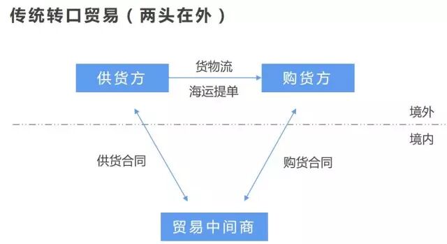 通常,转口贸易主要分为两大类:第一类为传统的转口贸易(俗称“两头在外”),即货物不经第三国或第三方,直接由供货方发货至购货方所在地,物权凭证为海运提单。作为贸易中间商,分别与两个境外上下游供销客户签订供货和购货合同,加入的中间商环节,一般通过低买高卖间接获取差价利润,货物不经过境内。