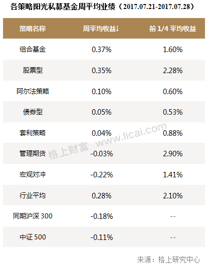 三、阳光私募周度业绩表现:组合基金策略夺冠,宏观对冲策略垫底