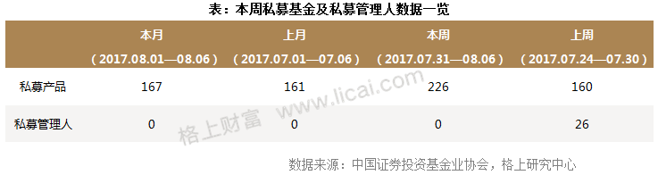六、阳光私募行业数据:本周新备案证券类产品226只,8月以来尚无私募管理人备案