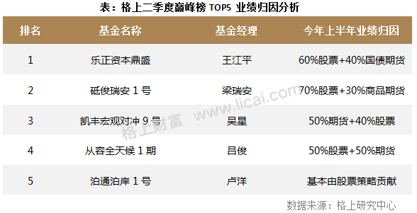 格上研究中心发现,今年上半年表现突出的宏观对冲型私募基金主要由股票策略贡献了大部分的收益,其中股票策略主要配置了一些大盘蓝筹股。在格上二季度巅峰榜宏观对冲策略居首位的乐正资产表示,今年上半年的业绩主要贡献来自于股票和国债期货,其在去年年底开始着重寻找低估值、增长确定性较高的行业和个股,并重点投资了港股,股票主要覆盖汽车、电子、消费行业。