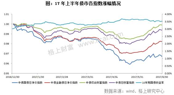 上半年,债券市场收益率整体震荡上行,10年期国债收益率从去年末3.01%一度震荡上行至3.69%,收益率上行幅度接近70个BP,较去年收益率低位上行超过100个BP。回顾一下,上半年新一轮库存周期对经济基本面形成支撑,工业生产平稳、外需改善,这些都是债券市场在上半年表现不佳的基础性力量;而年初以来的货币政策持续偏紧,4月前后金融监管全面升级进一步加剧了债市调整;债市收益率在5月调整至阶段性高点后,随着监管放缓、资金面好于预期、基本面边际下行及债券通落地等,6月国债收益率出现好转。