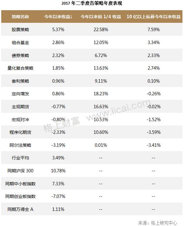 2017年二季度各项数据纷纷出炉,据格上理财统计,今年上半年阳光私募行业平均收益为3.49%。其中,股票策略今年以来平均收益为5.37%,摘得各策略平均收益的冠军。据格上理财统计发现,目前国内组合基金仍与股票型基金收益趋同性明显。由于A股市场整体震荡向上,受市场行情影响,组合基金今年以来平均收益为2.86%,位居第二。