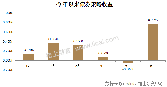 在这样不利的市场环境下,今年以来债券策略产品表现一直较为稳健,且在1月和5月平均收益均在九大策略中夺冠,6月收益最高为0.77%,而其上半年平均收益为2.32%,位列所有策略平均收益前三。据格上研究中心了解,上半年,部分债券型私募机构还是偏谨慎,采取缩久期、降杠杆、布局高评级品种的操作。虽然当前债券市场利率水平已到顶部区域,配置价值显现,但真正的下行拐点还需要再进一步确认,货币政策和去杠杆政策何时转向并不明确,加上信用风险的爆发,如何在积极布局的同时控制好风险是债券型私募机构下半年主要面临的问题。