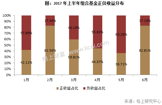 格上理财发现,目前国内组合基金与股票型基金收益相关性仍旧明显。从月度表现来上半年各月中,正收益占比最高的为6月,占比高达82.81%,2月正收益占比为82.56%,仅次于6月,这也与该月收益率相呼应,2月和6月分别为1.06%和2.41%。