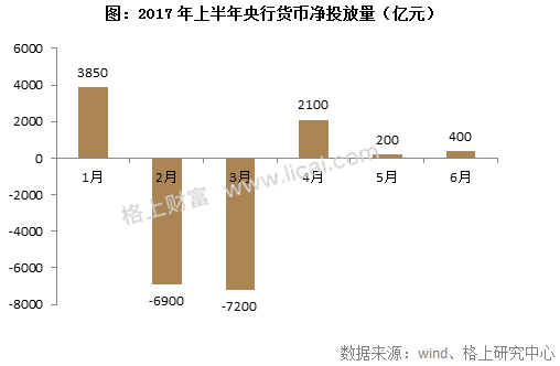 从货币环境来看,2017年在降杠杆、防风险的大背景下,央行在公开市场操作上延续稳中偏紧的政策,逆回购+MLF的调控替代了此前常用的调准调息,2017年上半年流动性环境维持紧平衡状态。截止6月底,央行在公开市场上货币累计净投放-7500亿元,呈现明显收紧态势。