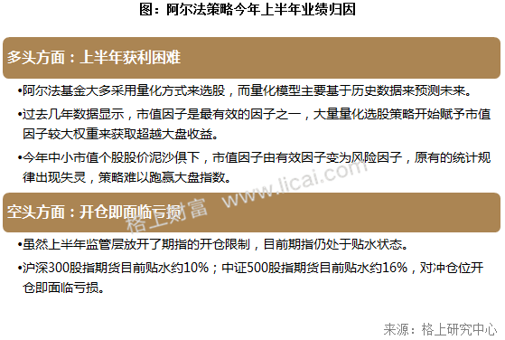 今年上半年阿尔法策略以-3.19%的平均收益在各策略中表现垫底,行业中仅9.29%阿尔法策略基金取得正收益,排名前五的阿尔法策略基金平均收益仅为2.01%。