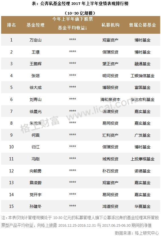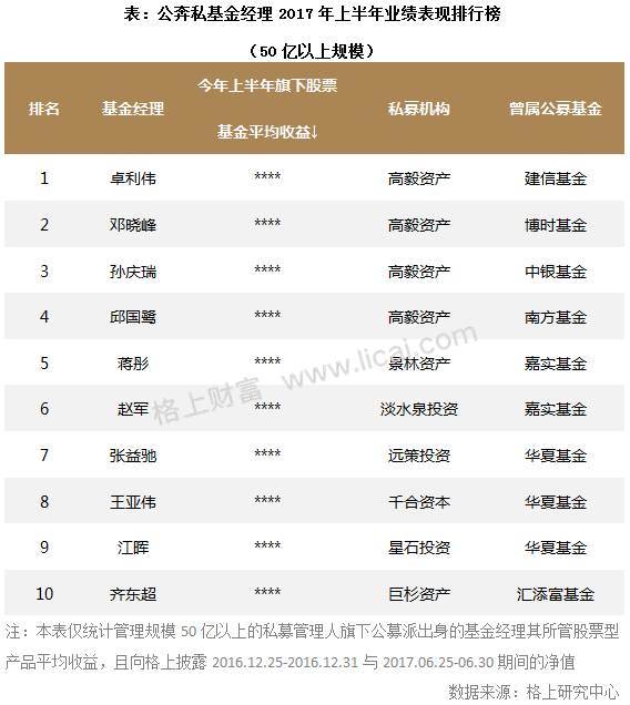 “公奔私”十周年,公募派基金经理上半年业绩排行榜