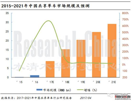 第三方研究机构统计显示,2017年将是各大运营商的爆发年,预计全年共享单车用户将达6170万人,增加约2倍;运营市场规模达到88.6亿元,同比增长670.4%。