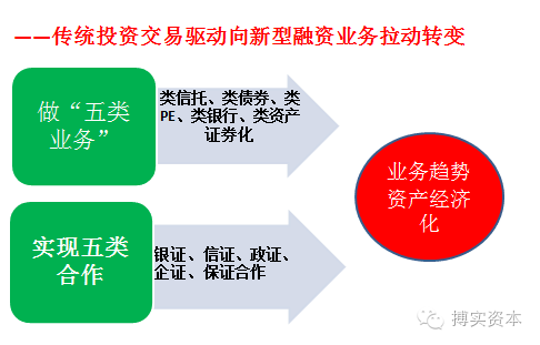 券商利用制度创新下的资管业务平台与通道,在国内利率逐渐市场化、多层次市场及信用体系逐步完善、金融分业监管和混业经营萌生的大背景下,开始发展以融资带动投资的大投资银行。由此国内券商向资本中介大举转型,大量类贷款、类信托业务被包装成新型商业模式,有效增强和补充了盈利能力,改善了盈利结构,金融市场的综合资源开始新一轮的流动和分配。