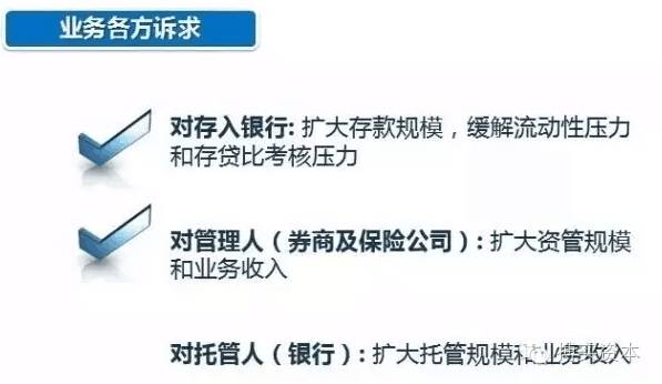 中国人民银行规定,保险资产管理公司的存款不属于金融机构的同业存款,而是一般性存款,在计算存贷比的时候,可计入银行存款规模。银行通过此业务可优化业务指标,扩大一般存款规模。