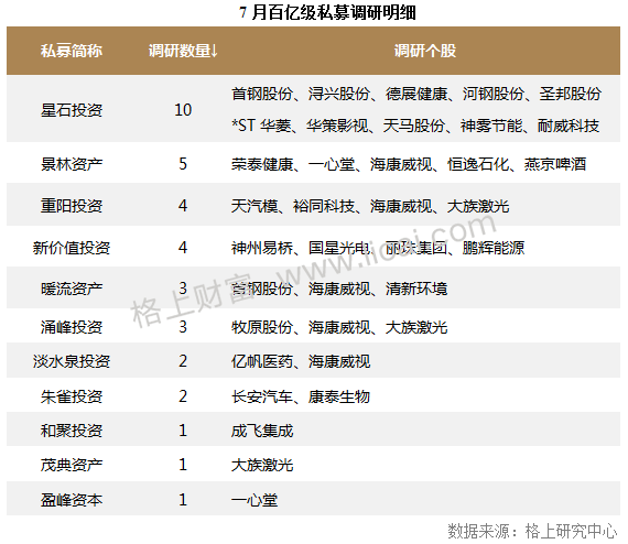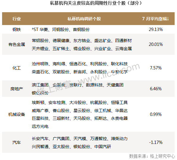 7月私募调研最新动向:周期行业受关注,钢铁股获百亿级私募青睐