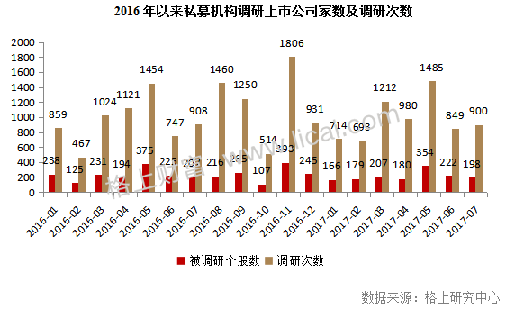 在这种市场行情下,私募机构调研热情依旧不温不火。格上研究中心数据显示,7月份参与调研的私募机构从6月份的598家增长至686家,环比上涨14.72%。私募机构共走访上市公司198家,环比下降10.81%;共计调研900次,较6月调研次数(849次)上涨6%。