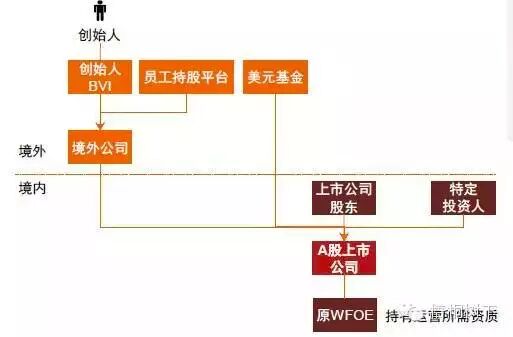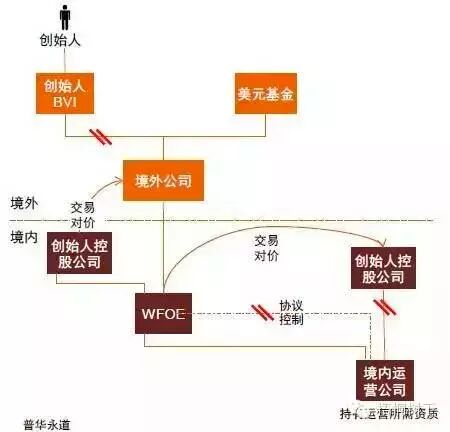 2.境外公司向创始人控股公司转让WFOE部分股权,WFOE变更成为JV。美元基金和创始人在JV中持有的股比和之前境外架构在WFOE持有的股比一致。