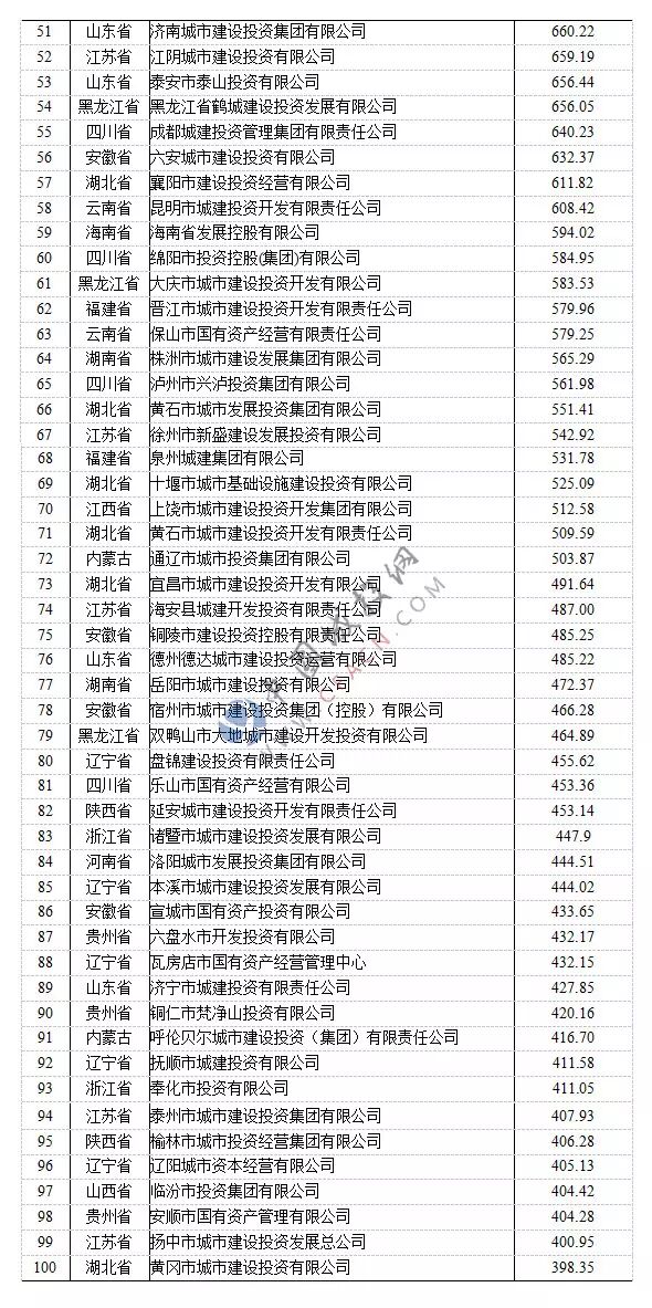 来源:中国城投网 整理:轻金融2017年9月5日,由中国城投网和中国现代集团组织的“城投公司百强榜单发布会暨转型研讨会”在北京举办,中国城投公