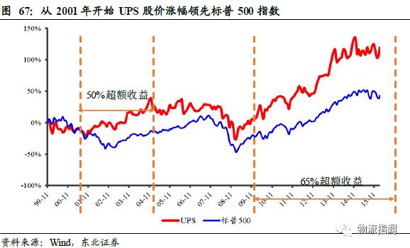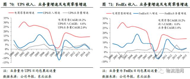 无论是UPS在50年代开始建立的陆运枢纽快递,还是FedEx在70年代建立的国内航空枢纽快递,都抓住了经济转型的先机,建立了具有规模优势和网络优势的业务模式,并各自保持了相应领域的竞争优势。
