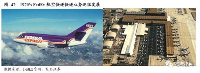 1978年10月,《美国民航放松管制法》颁布,进一步加速快递业、尤其是陆运/空运复合式物流快递企业的发展,受益于航空管制的放松,成立于1971年的联邦快递(FedEx)空运业务开始发力。