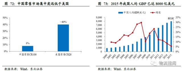 根据商务部统计数据,2014年中国连锁百强社会消费品零售额占比仅8%,而美国前50大零售商市场份额超过40%,其中,沃尔玛一家即占有9%的市场份额,营收达4800亿美元。 此外,由于我国的经济发展速度和城市发达水平有着巨大的差异性,不同地区的居民收入以及购买力也相距甚远,很多大型零售商放弃了在三四线城市以及广大乡镇地区的布局,而如今随着经济的发展,居民购买力大大增加,网购的兴起正好迎合消费需求,从而使网购快速深入到中国广大腹地。