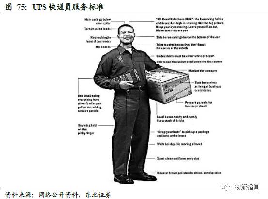 快递的标准化体系建设是快递企业做大、做强的重要基础建设之一。一流的公司依托管理体系运作,而管理体系的重要基础之一就是标准化体系。UPS与FedEx标准化体系建设的特点是,标准越细分化,其可操作性越强,运营成本越低。例如,UPS制定的递送员标准,它从形象、作业动作、与用户沟通用语等方面制定了详细的标准,可操作性非常强,正是其有了一套标准化的操作体系,才使公司能够保证服务时限与服务质量。