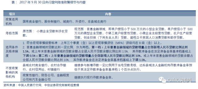 对于此次降准,中信策略认为:(1)属于结构性调整,引导资金脱虚向实,但不改稳健货币政策的走向。此次定向降准并非新增项目,只是调整范围,增加脱贫攻坚和“双创”领域,同时,拿掉单户授信超过500万以上的小微企业贷款和三农中的非农户贷款、农户消费贷款,聚焦真小微、真普惠。央行的目的,应该是在整体去杠杆背景下,引导资金流向资金面压力相对更为紧张的小微企业、双创领域,真正做到金融支持实体经济。