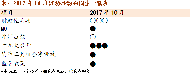 长江宏观赵伟团队认为,10月资金面可能面临财政缴税、基金流动性管理新规等冲击,超储率或继续处于低位,流动性环境或难现明显改善。流动性面临财政缴税、基金流动性管理新规等冲击,存单纳入MPA考核的影响也将逐渐显现;与此同时,货币投放和外汇占款等提供的增量资金有限,超储率或继续处于相对低位。