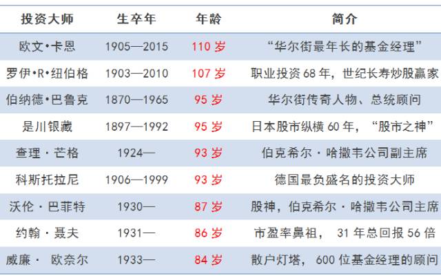 我发现了一个现象——很多投资大师都是长寿的老爷爷。