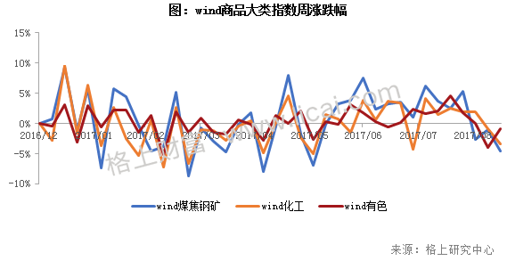 从振幅来看,今年6月以来,各个品种的周振幅上下波动较大,各个品种均呈现震荡走势。6月开始,黑色、化工、有色等板块开始出现连续上涨,周度涨跌幅持续为正。